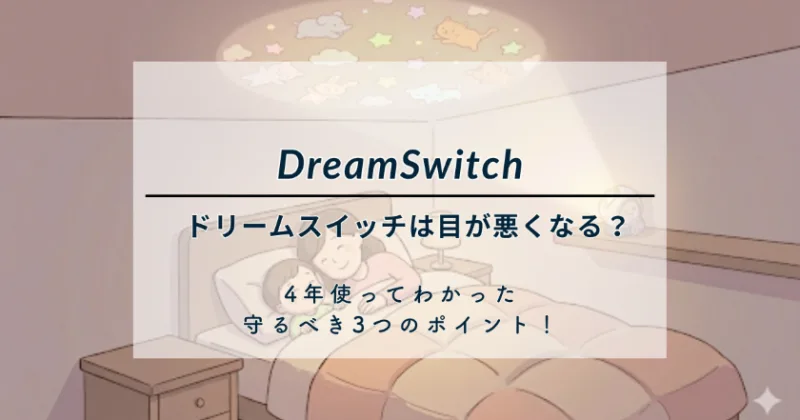 先に結論だけ言うと、ドリームスイッチ(絵本プロジェクター)は、使い方を守れば「目が悪くなる可能性は低い」です。